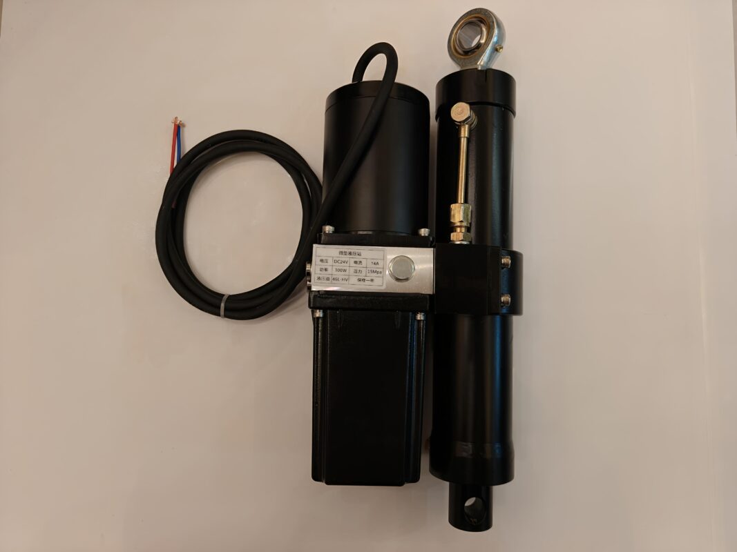 Our hydraulic push rod parameters are DC 24V, 300W, 14A, 15MPa, using 46L-HV hydraulic oil (suitable for -20°C). It has overcurrent, overload, and overheat protection. The hydraulic cylinder features bidirectional self-locking with a highly integrated design.